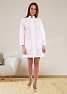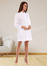 Халат женский средней длины, прилегающего силуэта с центральной бортовой застежкой на кнопки. Полочка с эффектной отрезной баской и рельефами с декоративной двойной строчкой. В нижней части полочек расположены нижние накладные карманы, в верхней части небольшой нагрудный карман для мелочей. Воротник-стойка придает изделию элегантность, а длинный втачной рукав практичность и комфорт. Спинка с рельефными швами и хлястиком в центральной части выгодно подчеркивают талию. Геометричность линий, отстрочки и подрезы делают образ строгим, но в то же время женственным и романтичны. Халат выполнен из легкой смесовой ткани, прост в уходе, предназначен для медицинских работников и персонала СПА салонов.