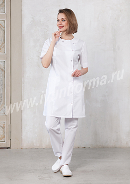 Медицинская одежда сшита из бязи, а также тканей «Тиси» и «Сатори». Некоторые модели обработаны водоотталкивающей пропиткой. Благодаря качеству ткани и пигментов женские медицинские халаты и костюмы хирургов от IVUNIFORMA не линяют и не дают усадку даже после множества стирок.