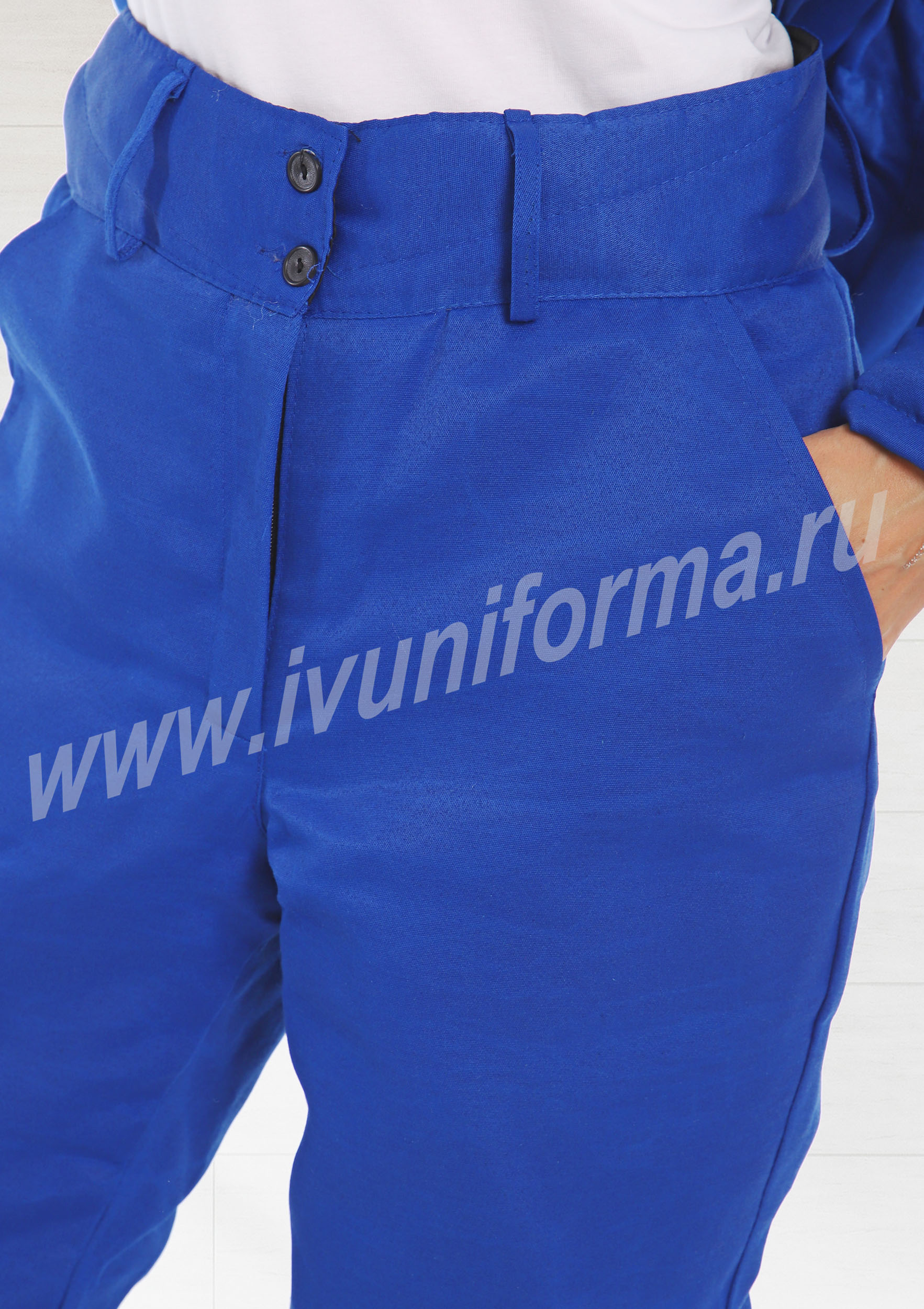 Брюки с высоким утепленным поясом, со шлевками под ремень, застежкой на две пуговицы и молнию. По низу брюк расположены две светоотражающие ленты. Утепление брюк 200 гр/кв.м.