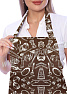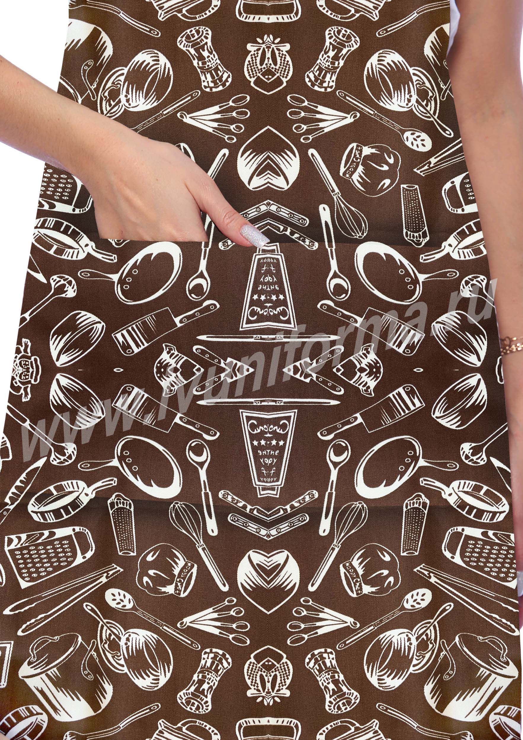 Фартук женский средней длины, с передним карманом, разделённым строчкой на две части. Удобная шейная бретель имеет регулировку по длине. Широкие пояса плотно фиксируют фартук на талии. Водоотталкивающая пропитка позволяет защитить одежду от общий производственных загрязнений. Фартук может использоваться в составе защитного комплекса или является частью корпоративной формы.